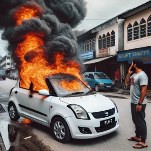 मालिक स्विफ्ट से उतर कर दुकान पर गया और जल गई कार