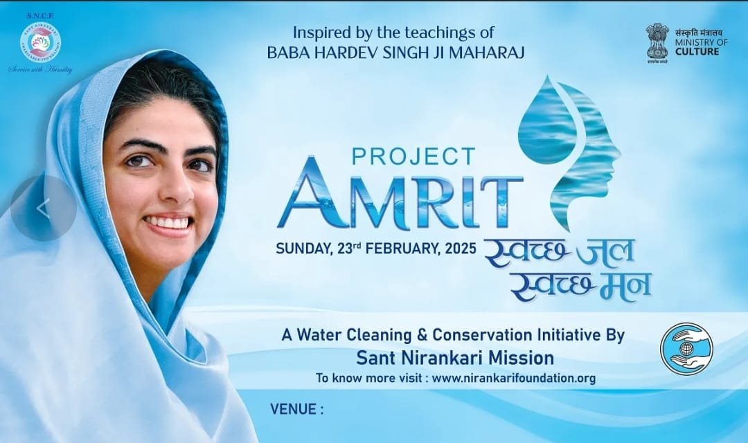 *अम्बाला/ दिल्ली, 21 फरवरी, 2025:-* संत निरंकारी मिशन की सेवा भावना और मानव कल्याण के संकल्प को साकार करने हेतु ‘प्रोजेक्ट अमृत’ के अंतर्गत ‘स्वच्छ जल, स्वच्छ मन’ परियोजना के तृतीय चरण का भव्य शुभारंभ रविवार, 23 फरवरी 2025 को परम श्रद्धेय सतगुरु माता सुदीक्षा जी महाराज एवं सत्कार योग्य निरंकारी राजपिता रमित जी के पावन सान्निध्य में यमुना नदी के छठ घाट, आई.टी.ओ., दिल्ली पर किया जाएगा। इस परियोजना का उद्देश्य जल संरक्षण एवं स्वच्छता के प्रति जागरूक करना है, ताकि भावी पीढ़ियों को निर्मल जल और स्वस्थ पर्यावरण का वरदान प्राप्त हो सके।
