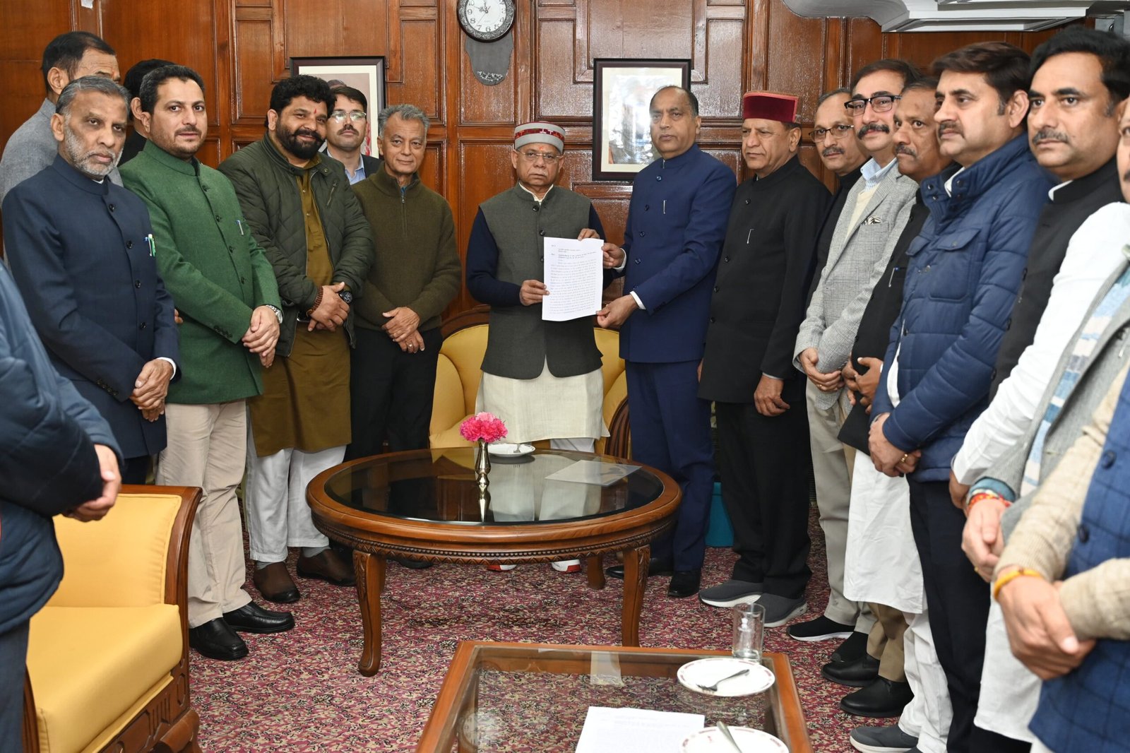 जयराम ठाकुर ने इस अवसर पर कहा हिमाचल प्रदेश भारतीय जनता पार्टी विधायक दल आज राज्यपाल को ज्ञापन के माध्यम से ध्यान में लाया कि हिमाचल प्रदेश बिजली बोर्ड के अन्तर्गत एच०पी०पी०सी०एल० के चीफ इन्जीनियर विमल नेगी की संदिग्ध परिस्थितियों में हुई मौत की ओर दिलाना चाहते हैं। श्रीमान जी श्री विमल नेगी पिछले कई दिनों से लापता थे, परिवार द्वारा शिकायत दर्ज करने के बाद भी एफ०आई०आर० दर्ज नहीं की गई और न ही उनका पता चल पाया। 18 मार्च, 2025 को श्री नेगी का शव गोविन्दसागर झील से बरामद हुआ। 19 मार्च, 2025 को एच०पी०पी०सी०एल० के अधिकारियों, कर्मचारियों और श्री विमल नेगी के परिजनों ने प्रबन्ध निदेशक हरिकेश मीणा और निदेशक देश राज को जिम्मेदार ठहराया। उनका कहना था कि उक्त अधिकारी श्री विमल नेगी को गलत काम करने के लिए दबाव डालते थे जिसके कारण श्री विमल नेगी मानसिक दबाव में रहते थे। श्री विमल नेगी की मानसिक प्रताड़ना इतनी बढ़ गई थी कि परेशान होकर श्री नेगी को यह कदम उठाने के लिए मजबूर हुए, इसलिए इन अधिकारियों को तुरन्त निलम्बित कर उन पर एफ०आई०आर० दर्ज करनी चाहिए तथा पूरी घटना की जॉच सी०बी०आई० से होनी चाहिए। सरकार द्वारा सकारात्मक कारवाई न करने पर एच०पी०पी०सी०एल० के कर्मचारियों व श्री नेगी के परिजनों ने श्री नेगी का शव एच०पी०पी०सी०एल० के कार्यालय के बाहर रख कर सरकार को चेतावनी दी कि वे तब तक दाह-संस्कार नहीं करेंगे जब तक सरकार उनकी मांगों को नहीं मानेगी, तब जाकर सरकार ने एच०पी०पी०सी०एल० के निदेशक को तो निलम्बित कर दिया, परन्तु प्रबन्ध निदेशक को निलम्बित करने की जगह सिर्फ पद से ही हटाया। उसके बावजूद भी जब परिजन माने नहीं तब जाकर एफ०आई०आर० दर्ज की तत्-पश्चात श्री विमल नेगी के परिजन उनका शव दाह संस्कार के लिए अपने पैतृक गाँव किन्नौर ले गए।