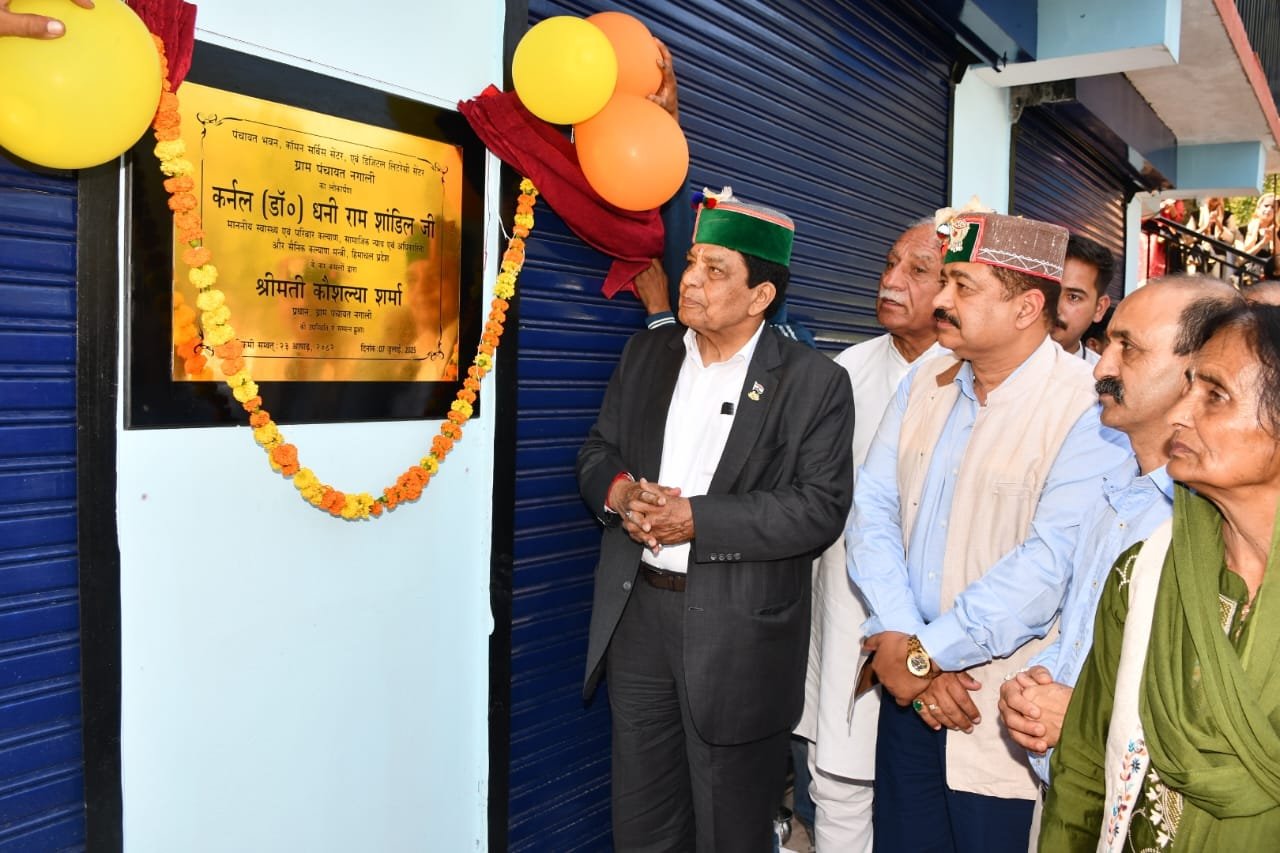 स्वास्थ्य एवं परिवार कल्याण, सामाजिक न्याय एवं अधिकारिता तथा सैनिक कल्याण मंत्री कर्नल डॉ. धनीराम शांडिल ने कहा कि प्रदेश सरकार ‘बहुउद्देशीय’ पंचायत भवनों का निर्माण कर रही है ताकि ग्रामीणों को एक ही परिसर में अपना कार्य करवाने की सुविधा मिल सके। स्वास्थ्य मंत्री आज सोलन के कण्डाघाट उपमण्डल की ग्राम पंचायत नगाली में 65 लाख रुपए की लागत से नवनिर्मित बहुउद्देशीय पंचायत भवन का लोकार्पण करने के उपरांत ग्रामीणों को संबोधित कर रहे थे।