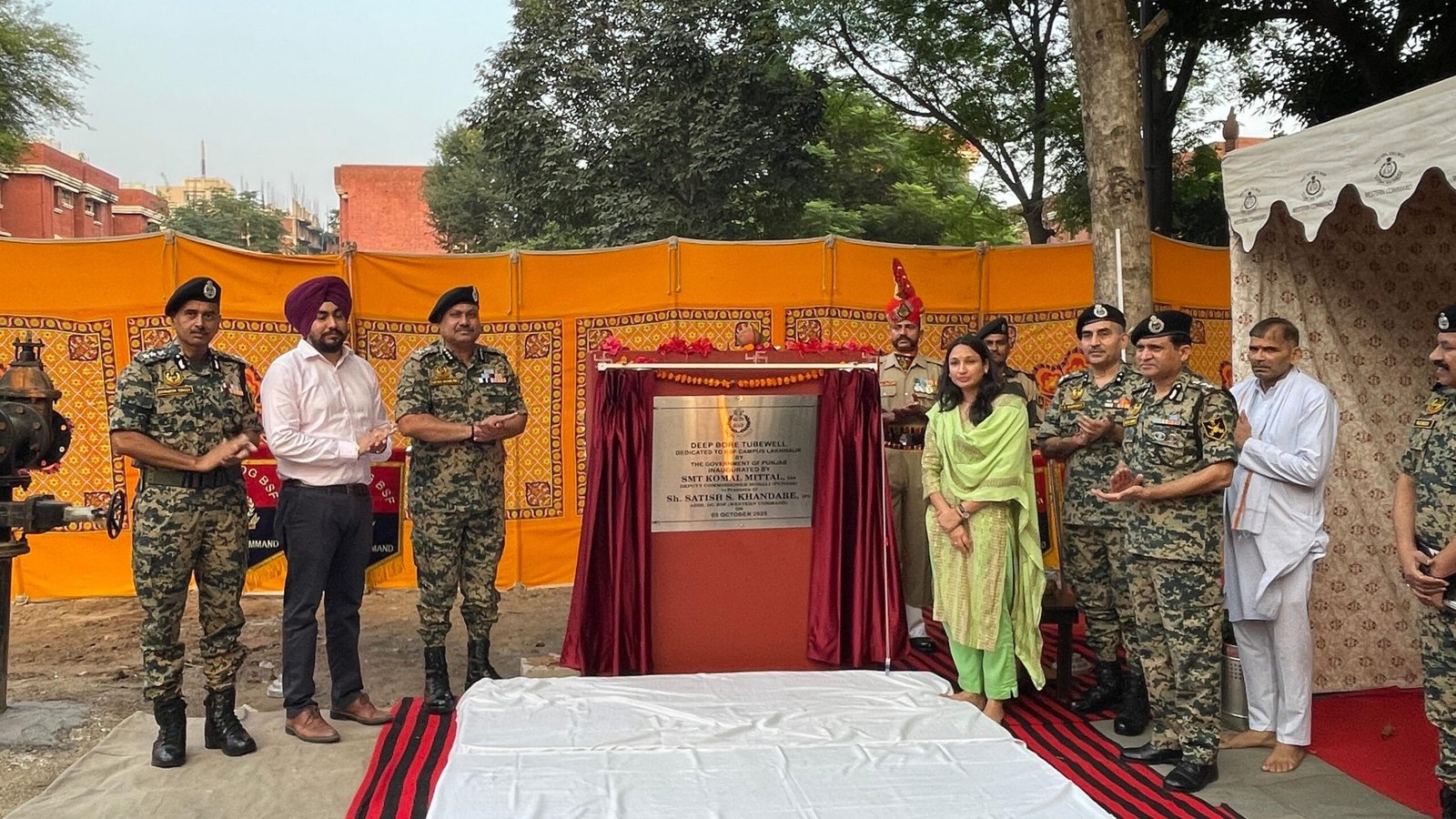 लखनौर स्थित बीएसएफ (सीमा सुरक्षा बल) परिसर में आज शाम 36 लाख रुपये की लागत से 1100 फीट गहराई वाले नए ट्यूबवेल बोर का उद्घाटन एक सादे समारोह के दौरान डिप्टी कमिश्नर साहिबजादा अजीत सिंह नगर श्रीमती कोमल मित्तल, अतिरिक्त महानिदेशक बीएसएफ (पश्चिमी कमान) श्री सतीश एस खंडारे और कार्यकारी अभियंता श्री रमनप्रीत सिंह ने संयुक्त रूप से किया।
