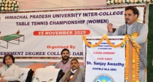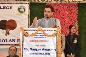 अर्की के विधायक संजय अवस्थी ने कहा कि खेल युवाओं को न केवल अनुशासित बनाते है बल्कि उन्हें समाज का एक उत्तरदायी नागरिक बनाने में भी सहायक बनते है। संजय अवस्थी गत सांय अर्की विधानसभा क्षेत्र के ग्राम धमोग में युवा महोत्सव के तहत अंतर महाविद्यालय छात्रा टेबल टेनिस प्रतियोगिता के समापन समारोह को सम्बोधित कर रहे थे।