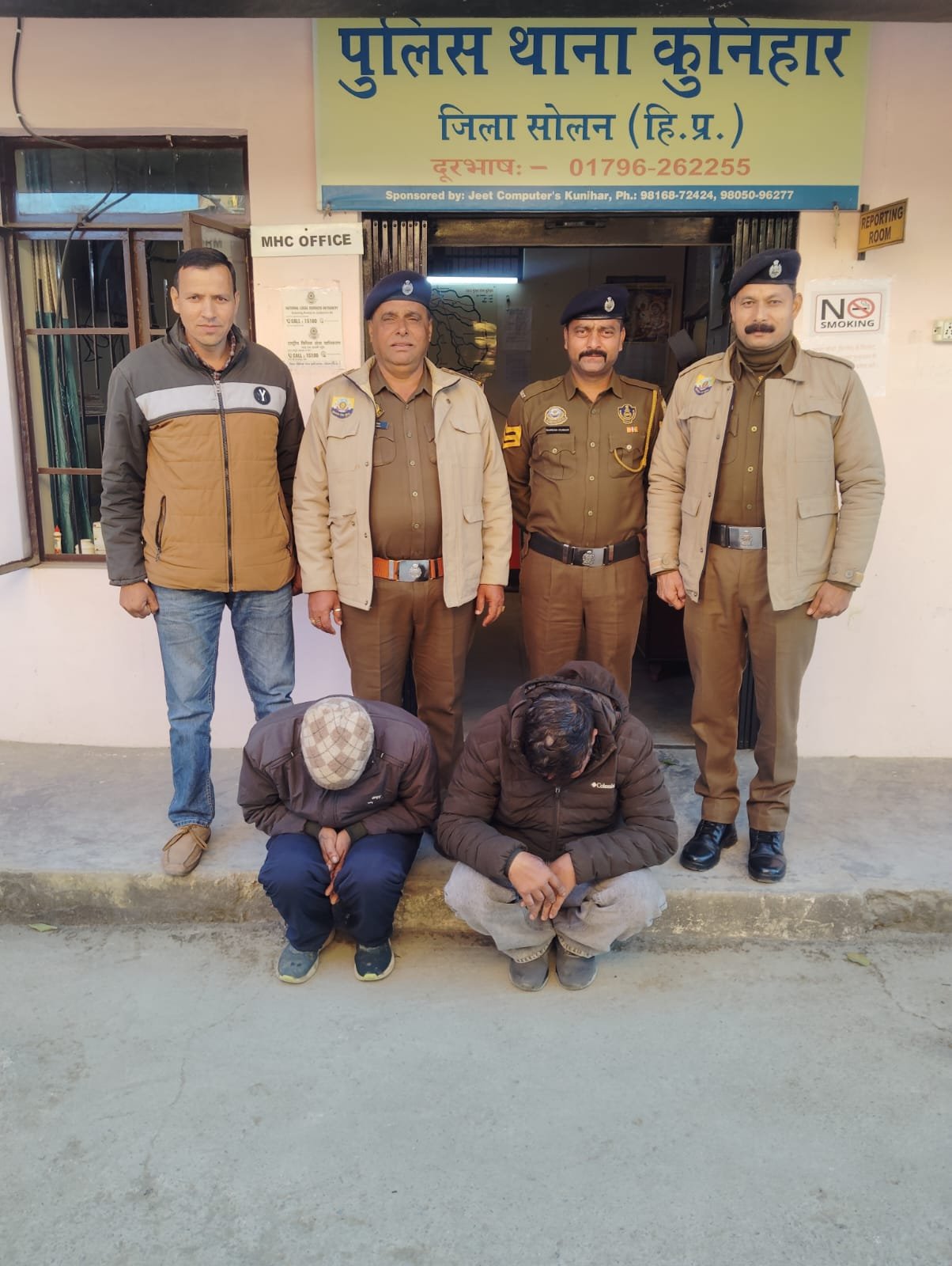 दिनांक 10-12-2025 को जब पुलिस थाना कुनिहार की एक टीम थाना क्षेत्र में गश्त व अपराधों की रोकथाम हेतु मौजूद थी तो उक्त टीम को गुप्त सूत्रों से सूचना मिली कि कुफ्टू की तरफ से एक स्कूटी पर राजकुमार उर्फ़ बाज़ी तथा संजय कुमार नाम के दो व्यक्ति बैठकर कुनिहार की ओर आ रहे है जो मादक पदार्थ अफीम व चरस बेचने का धन्धा करते है, जो आज भी भारी मात्रा में चरस व अफीम को बेचने के लिए लाये है जो इसे कुनिहार क्षेत्र में बेचने की फिराक में है I *इस सूचना पर उक्त टीम द्वारा तत्परता से कार्यवाही करते हुए नाकाबंदी करके स्कूटी को रोककर चैक किया गया I चैकिंग के दौरान उपरोक्त स्कूटी पर बैठे 02 व्यक्तियों जिनके नाम संजय कुमार पुत्र श्री शालिग राम निवासी गाँव काटल, तहसील अर्की जिला सोलन हि०प्र० उम्र 44 वर्ष व राजकुमार उर्फ़ बाजी पुत्र श्री अमीचंद निवासी गाँव रॉ डाकखाना मंजू तहसील अर्की जिला सोलन हि०प्र० उम्र 42 वर्ष मालूम हुए के कब्जा से 101 ग्राम अफीम व 407 ग्राम चरस बरामद की गई जिस पर पुलिस थाना कुनिहार में उपरोक्त अभियोग पंजीकृत किया गया I इस अभियोग के अन्वेषण के दौरान मामले में संलिप्त स्कूटी को जब्त करके कब्जा पुलिस में लिया गया I दोनों आरोपियों को गिरफ्तार किया गया, जिन्हें आज दिनांक 11-12-2025 को माननीय अदालत में पेश किया जा रहा है I दोनों आरोपियों के पूर्व अपराधिक रिकॉर्ड की पड़ताल की जा रही है I मामले में जाँच जारी है I*