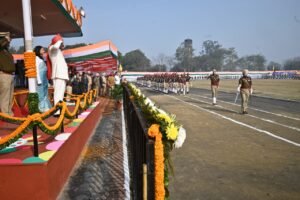 गणतंत्र दिवस परेड में पुलिसकर्मियों, एनसीसी कैडेटों और जन कल्याण योजनाओं की एक झलक।