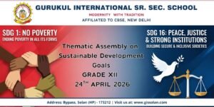 गुरुकुल इंटरनेशनल सीनियर सेकेंडरी स्कूल, सोलन में दिनांक 24 अप्रैल, 2026 को कक्षा 12 के विद्यार्थियों द्वारा सतत विकास लक्ष्यों (एस.डी.जी.) पर आधारित एक प्रभावशाली विशेष प्रार्थना सभा का आयोजन किया गया। इस कार्यक्रम का उद्देश्य विद्यार्थियों एवं समाज में वैश्विक लक्ष्यों के प्रति जागरूकता फैलाना था।